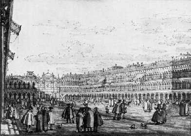 Der Markusplatz in Venedig. Zeichnung von Canaletto