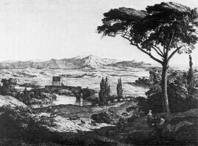 Der Ponte Salaro bei Rom. Radierung von Mechau