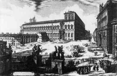 Der Monte Cavallo in Rom. Radierung von Pironesi.