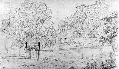 Eingang zur Villa Chigi in Ariccia. Zeichnung von Goethe