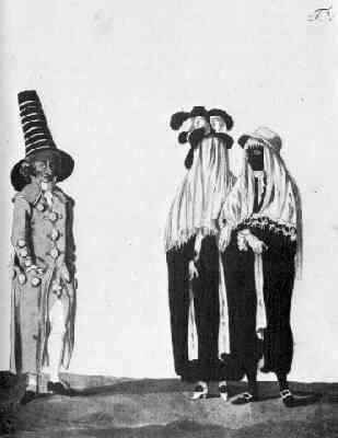 Manchmal wird eine Maske vom Theatern nachgeahmt. Einige machen sich's sehr bequem, indem sie sich in Teppiche oder Leintücher hüllen, die sie über dem Kopfe zusammenbinden.