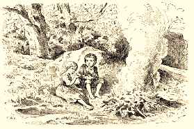 Hänsel und Gretel saßen um das Feuer, und als der Mittag