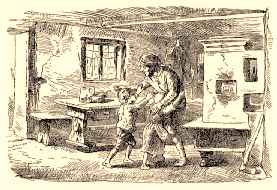 mit ihrer dürren Hand und trug ihn in einen kleinen Stall