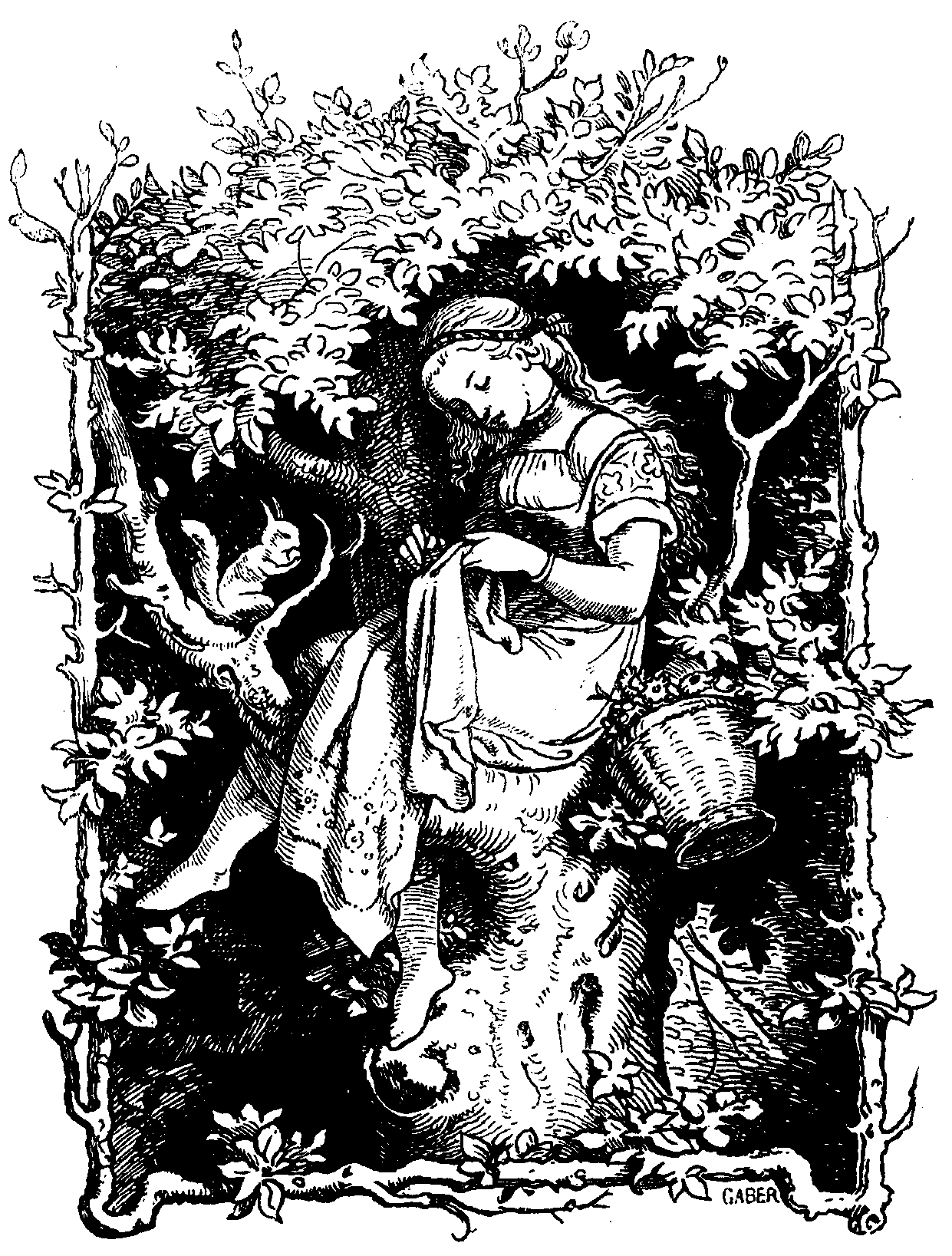 Das Mädchen aber faßte den festen Entschluß, seine Brüder zu erlösen, und wenn es auch sein Leben kostete. Es verließ die Wildhütte, ging mitten in den Wald und setzte sich auf einen Baum und brachte da die Nacht zu. Am andern Morgen ging es aus, sammelte Sternblumen und fing an zu nähen. Reden konnte es mit niemand, und zum Lachen harte es keine Lust: es saß da und sah nur auf seine Arbeit. Als es schon lange Zeit da zugebracht hatte, geschah es, daß der König des Landes in dem Wald jagte und seine Jäger zu dem Baum kamen, auf welchem das Mädchen saß. Sie riefen es an und sagten 'wer bist du?' Es gab aber keine Antwort. 'Komm herab zu uns,' sagten sie, 'wir wollen dir nichts zuleid tun.' Es schüttelte bloß mit dem Kopf. Als sie es weiter mit Fragen bedrängten, so warf es ihnen seine goldene Halskette herab und dachte sie damit zufrieden zu stellen. Sie ließen aber nicht ab, da warf es ihnen seinen Gürtel herab, und als auch das nichts half, seine Strumpfbänder, und nach und nach alles, was es anhatte und entbehren konnte, so daß es nichts mehr als sein Hemdlein behielt. Die Jäger ließen sich aber damit nicht abweisen, stiegen auf den Baum, hoben das Mädchen herab und führten es vor den König. Der König fragte 'wer bist du? was machst du auf dem Baum?' Aber es antwortete nicht. Er fragte es in allen Sprachen, die er wußte, aber es blieb stumm wie ein Fisch. Weil es aber so schön war, so ward des Königs Herz gerührt, und er faßte eine große Liebe zu ihm. Er tat ihm seinen Mantel um, nahm es vor sich aufs Pferd und brachte es in sein Schloß. Da ließ er ihm reiche Kleider antun, und es strahlte in seiner Schönheit wie der helle Tag, aber es war kein Wort aus ihm herauszubringen. Er setzte es bei Tisch an seine Seite, und seine bescheidenen Mienen und seine Sittsamkeit gefielen ihm so sehr, daß er sprach 'diese begehre ich zu heiraten und keine andere auf der Welt,' und nach einigen Tagen vermählte er sich mit ihr.