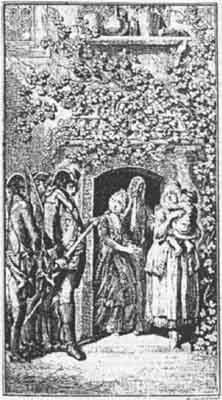 Indessen da er eine kleine Strecke gegangen war, fing die Betrübniß an, die Oberhand zu gewinnen. Er sahe nur allzuwohl ein, daß er nunmehr alle Hofnung verlohren hätte, von seinen Gönnern einige Hülfe zu erlangen. Er kam mit traurigem Gemüthe nach Hause. Aber wie groß war sein Entsetzen, da er sein Haus von einem andern eingenommen, seine Familie in einer fremden Hütte, seine Frau und seine jüngste Tochter auf dem Krankenbette, und seine älteste Tochter ganz in Thränen zerfließend antraf! Er sank trostloß auf eine Bank nieder, stand nach einigen Minuten auf, umarmte seine Frau und seine Kinder. »Ich bin nicht so glücklich gewesen, sagte er, bey Menschen einige Hülfe für uns zu finden, wir müßen alle Hülfe von dem allmächtigen Gott erwarten, und der wird die unglückliche Unschuld nicht verlassen.«