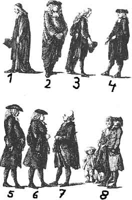 beobachtet. Die Mäntel wurden rechts oder links getragen, ohne einzige Regel, wie es jedem