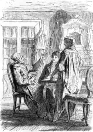 Eiferig liest der Papa und vergaß, sich die Pfeife zu stopfen.