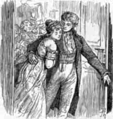 Flog mit der Braut aus der Thüre der Bräutigam; lautes Gelächter