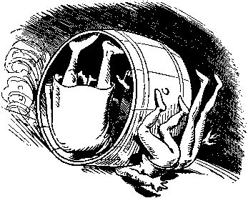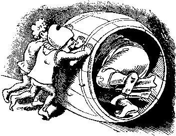 | Da hilft kein Weinen und kein Schrein, Sie müssen unters Faß hinein. |