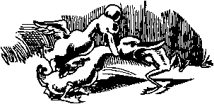 | Schon hat die eine ihn beim Kopf, Die andre hält ihr zu den Kropf. |