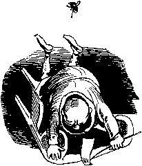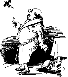 | Rumbums! Da liegt der Stuhl und er. Die Fliege flattert froh umher. |
