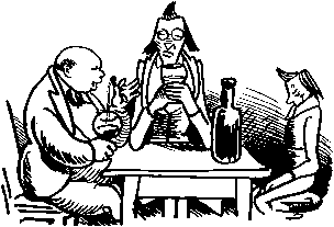 | Kuno eilet froh und prompt, Daß er in den Keller kommt, Wo er still und wohlgemut Etwas von dem Traubenblut |