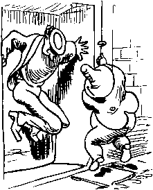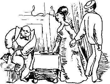 | Heftig bollert man am Tor, Der Portier kommt nicht hervor. |