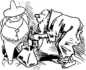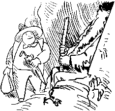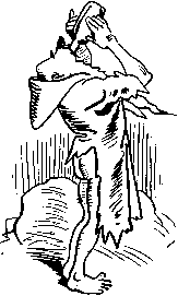 | Hier in öder Felsenritzen Sieht er einen Klausner sitzen.