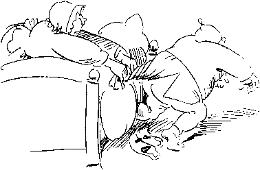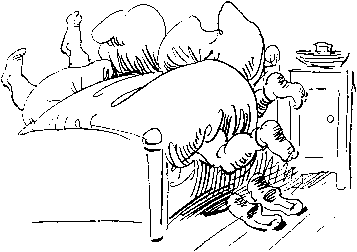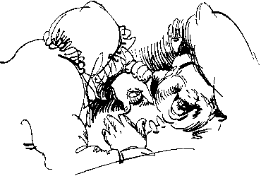 | Ganz unvermutet macht er: Kieks! Hierauf erhebt sich ein lautes Gequieks. Dorette dagegen weiß auch voll List, Wo Knopp seine lustige Stelle ist. |