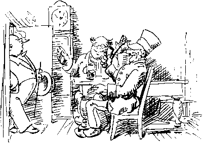 | »Potztausend, also auch mal hier!« So rufen freudig beim Öffnen der Tür Der kunstreiche Doktor Pelikan Und Bello, der Förster und Jägersmann. |