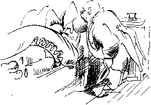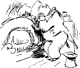 | Aber heftig stößt dieselbe - Bubb! - ihn auf sein Leibgewölbe. |