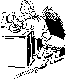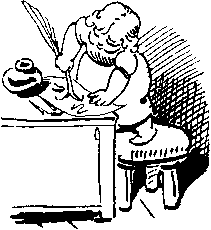 | Gern ergreifet sie die Feder An des Vaters Schreibkatheder. |