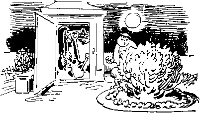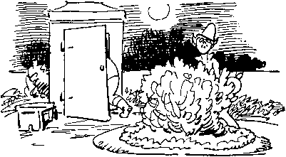 | Hier schleicht Sutitt schlau heraus Zu Herrn Knoppens Gartenhaus, Wo das Gartenbaugerät Wohlverwahrt und trocken steht. |