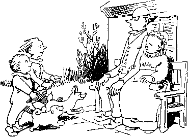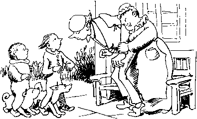 | Heftig ruft er: »Na, da bitt ich!« Doch Mama mit sanften Mienen, »Fittig!!« - bat sie - »gönn es ihnen!!« |