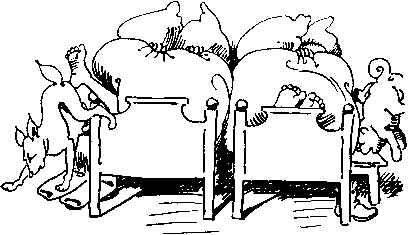 | Unser Plisch, gewohnterweise, Dreht sich dreimal erst im Kreise.