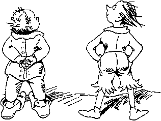 | Peter geht vorerst einmal In zwei Schlapp-Pantoffeln los, Paul in seiner Zackenhos. |