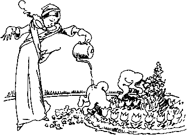| Zornig, aber mit Genuß Gibt sie jedem einen Guß: Erst dem Plisch und dann dem Plum. |